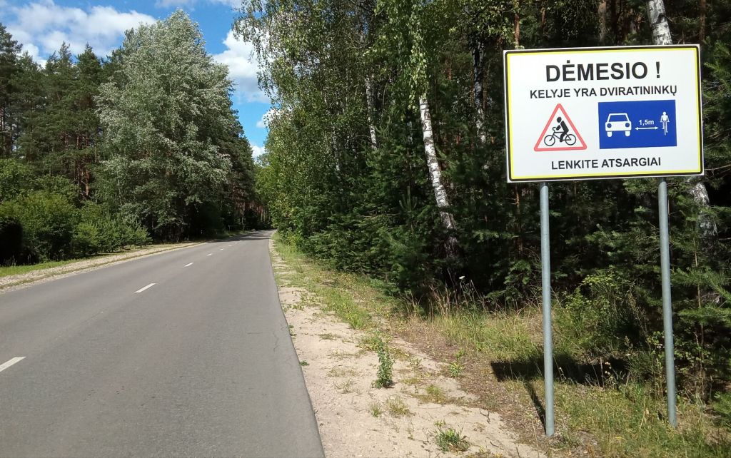 Quant à moi, je sers à nouveau les fesses, après les avoir eues bien secouées ce matin, en empruntant les routes lituaniennes qui ne sont plus longées par des pistes cyclables. Cependant, des panneaux routiers indiquent la distance réglementaire de 1,50 mètre à respecter. Depuis ce matin, cette instance est fort bien respectée. Pourvu que ca dure …