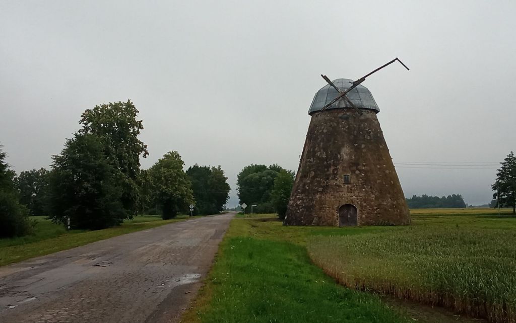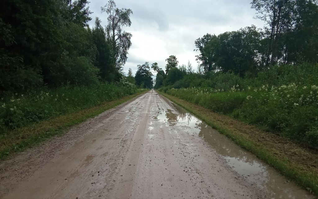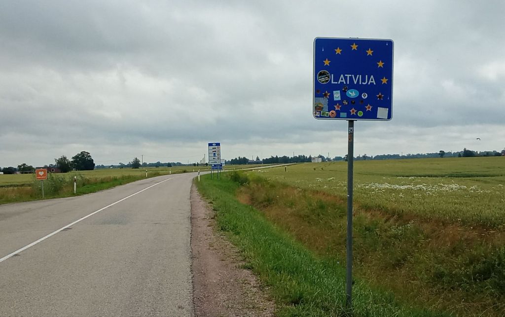 Quelques kms plus loin, je franchis la frontière. Il est 10h30 pile-poil. Me voici en Latvija ! Il me semble que les nuages s’éparpillent au nord. Le vent est tombé. La route est bonne.