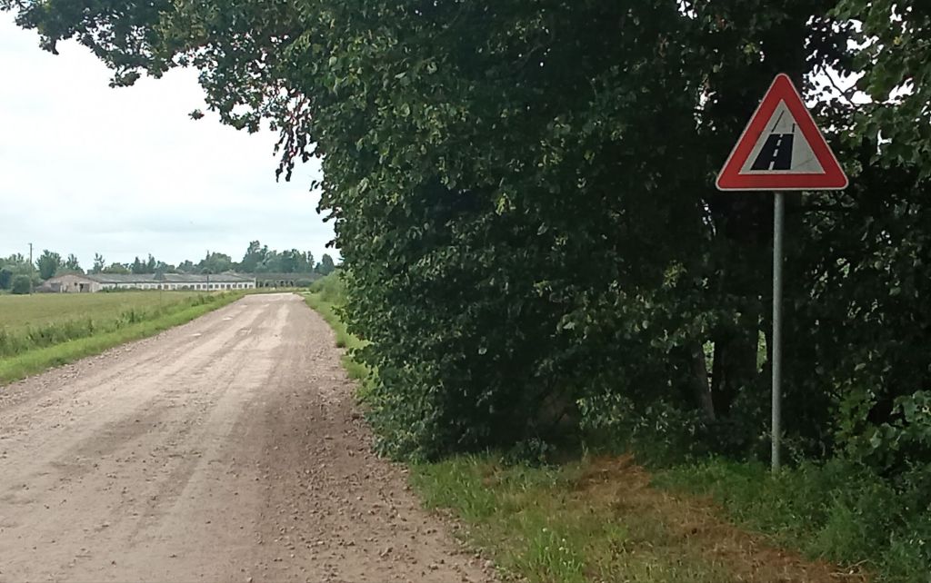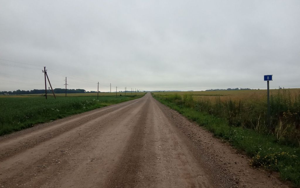 Je passe l’après-midi sur les pistes blanches de la route jaune V1038 rive gauche puis V38 rive droite. Je ne rencontre pratiquement aucun véhicule (et encore moins d’humains). Cela m’arrange car je peux choisir la trace plus roulante qui se trouve au milieu de la route. Vers 16h, je rejoins la grande route A8. J’a raté la bifurcation à droite à l’entrée du hameau de Peternieki. Vu la circulation, je ne préfère pas m’engager sur cette 2*2 voies très empruntées. Je refais un km pour partir dans la pampa avant de trouver un passage protégé pour franchir en toute sécurité l’A8.