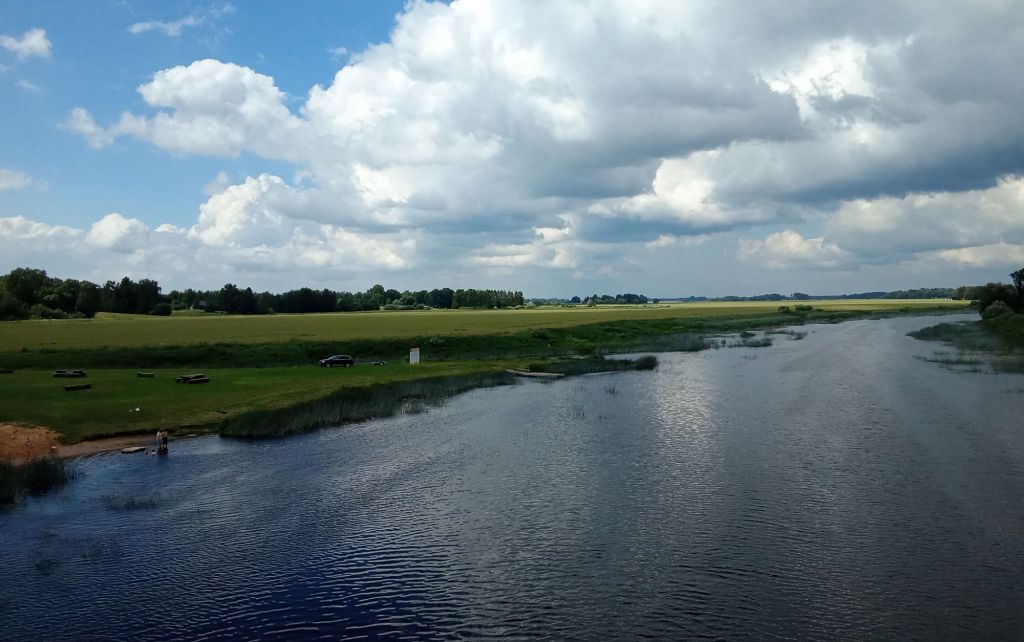 Un peu plus loin, ma trace m’indique de traverser la rivière Lielupe pour passer rive droite et atteindre le village de Mezotne. Le bac a dû cesser ou le pont être embarqué mais il m’est impossible de traverser. C’est dommage d’autant plus que de beaux manoirs et un site archéologique se trouvaient en face. Tant pis, je modifie ma trace pour rester rive gauche.